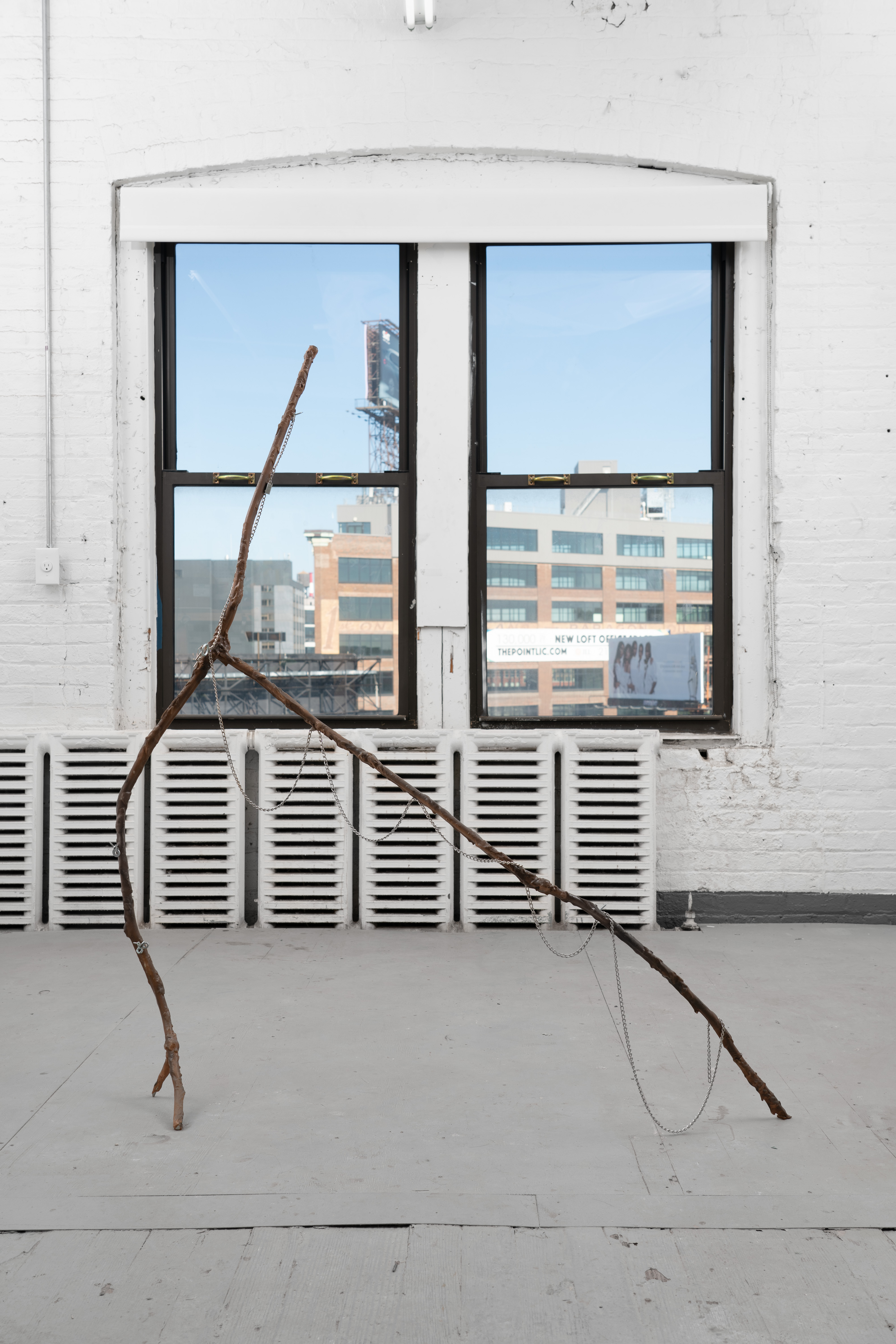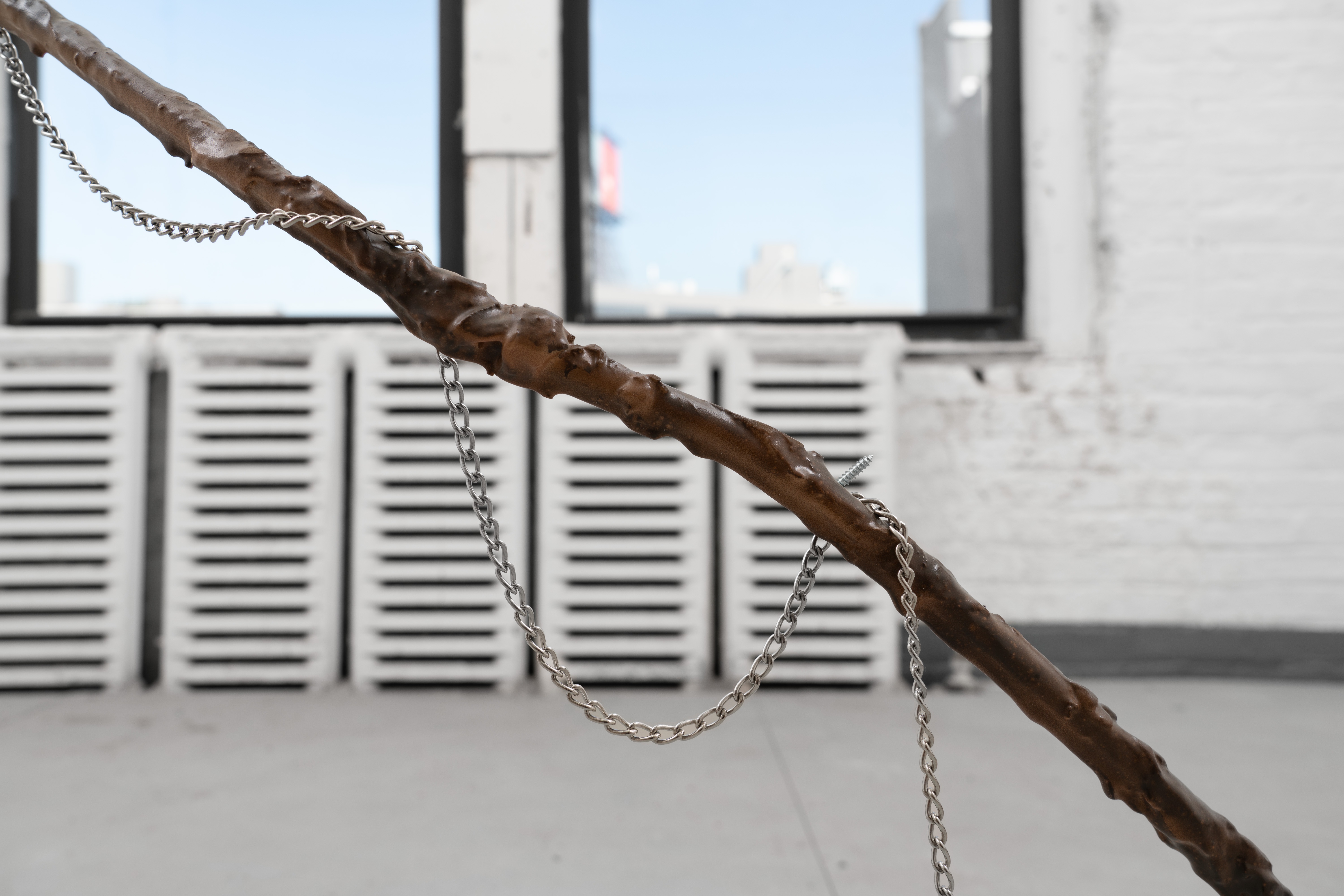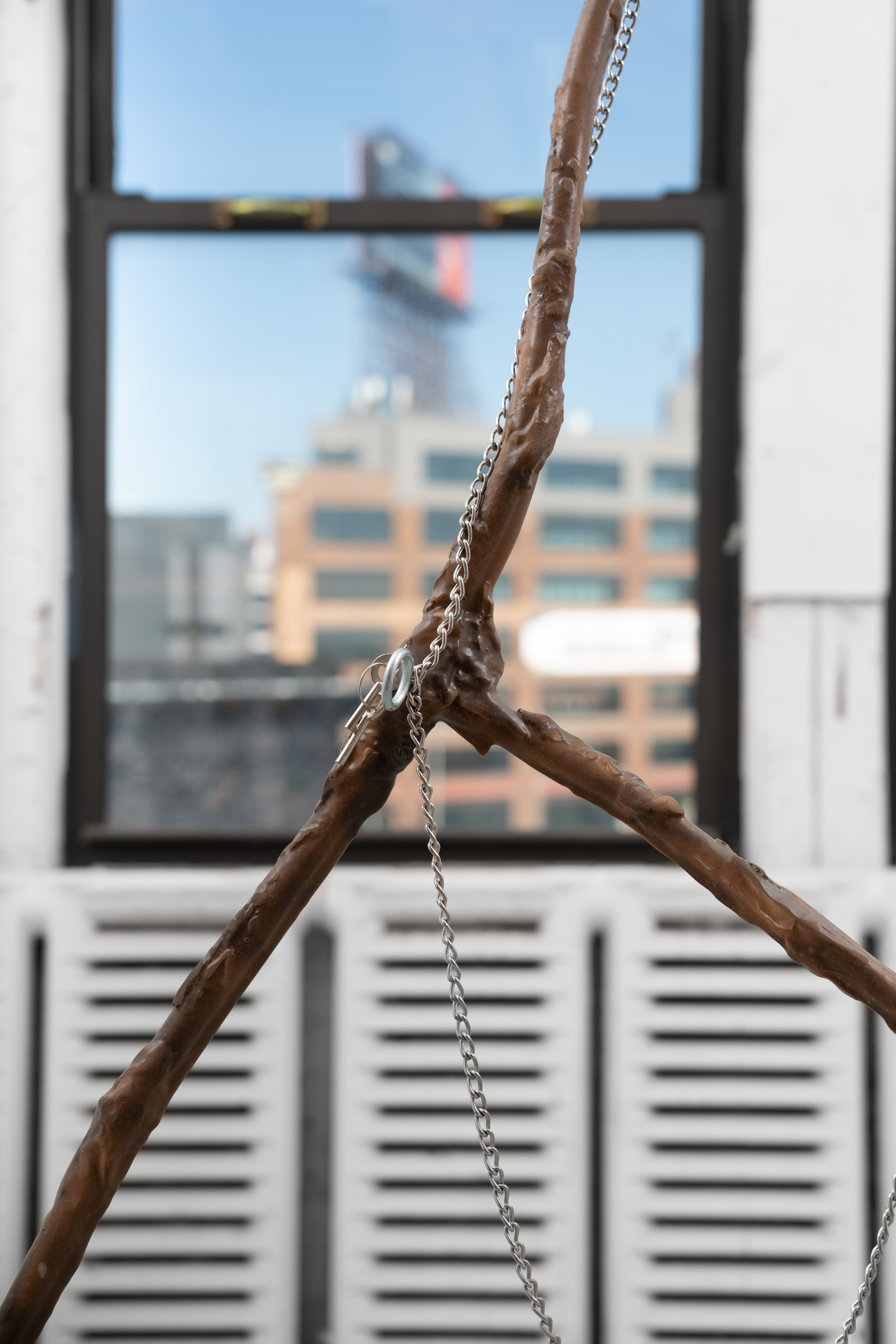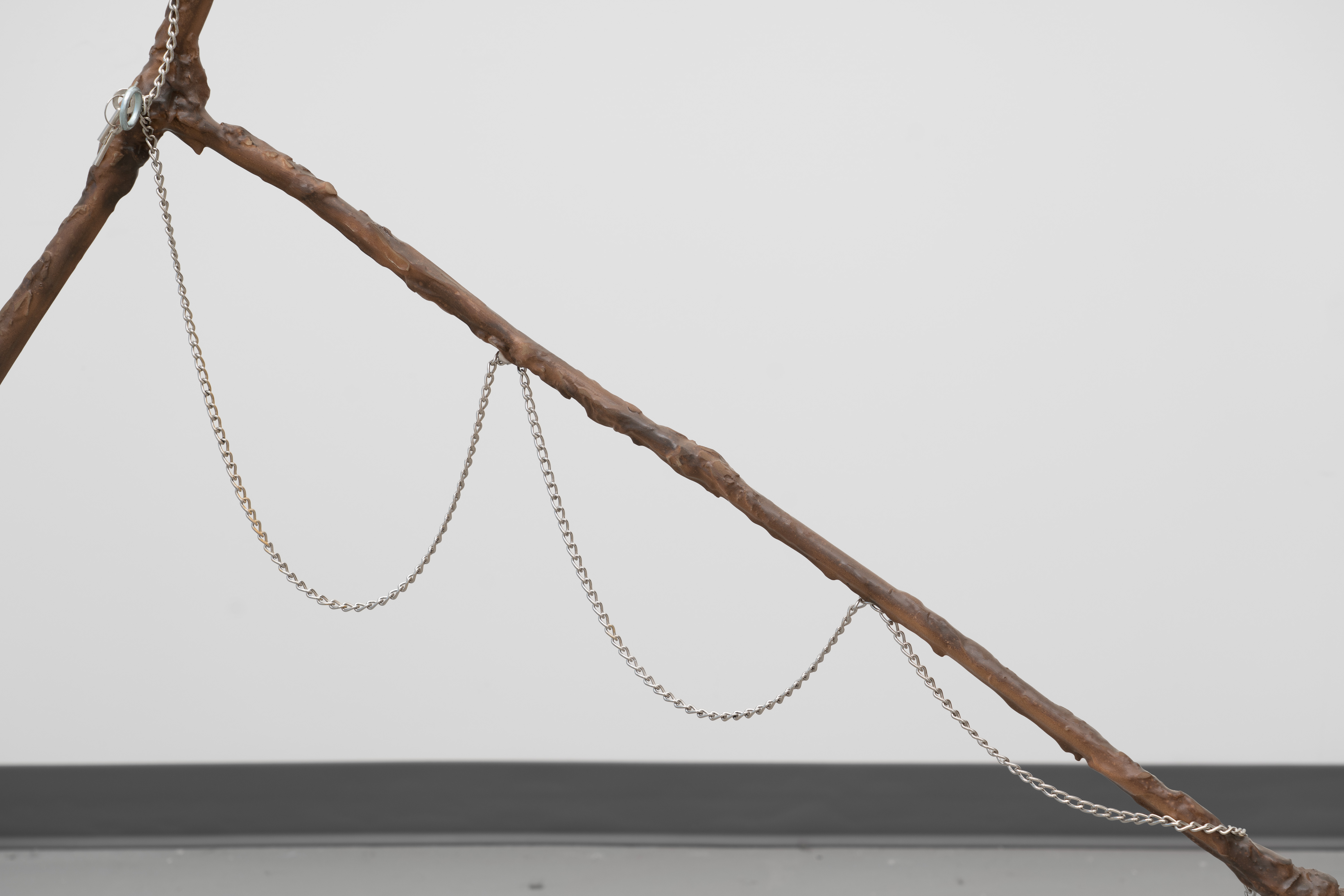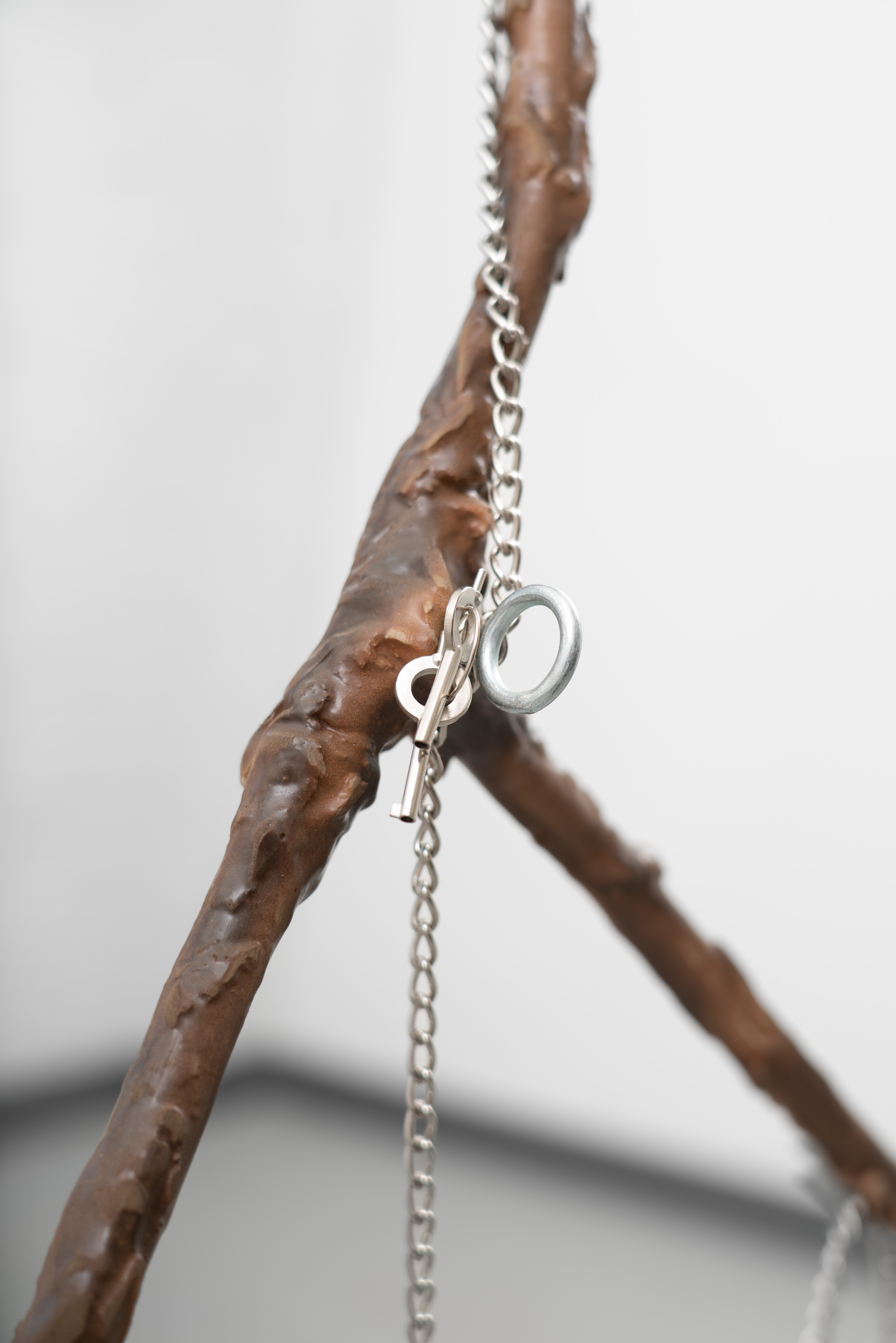 Dowsing Rod (3) 2023 Aluminum, found steel chain, hardware, neodymium magnets, epoxy putty, polyurethane resin, paint